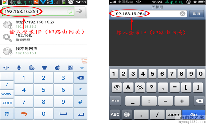 ②、打開系統自帶瀏覽器,輸入登錄IP(也就是路由器的網關,默認網關是192.168.16.254),如下圖所示: