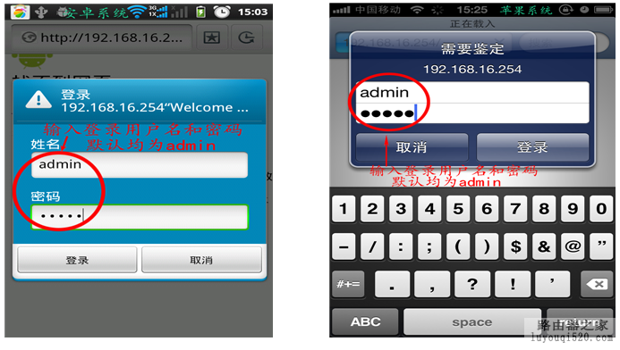 ③、輸入登錄用戶名和密碼,默認均為“admin”,小寫字母。如下圖所示: