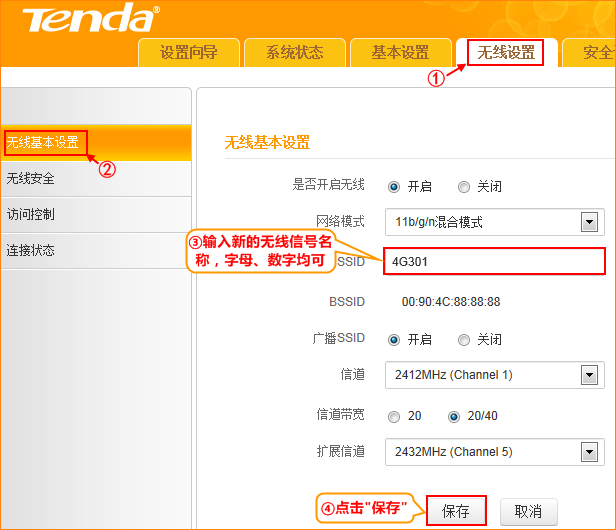 第三步:點擊“無線設置”-“無線基本設置”更改無線網絡名稱
