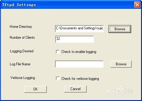 3、選擇好路徑,并單擊ok,并點擊tftpd-start開始運行