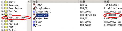 1、運行中輸入regedit,打開注冊表,在[HKEY_LOCAL_MACHINESYSTEMCurrentControlSetServicesFileZilla Server找到這個路徑,也就是FileZilla的路徑,有一鍵名是"ImagePath",也可以利用注冊表自帶的搜索功能,查找你想要修改的路徑;并點開這個鍵名查看信息,發現就是原來的路徑。