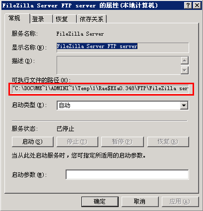 通過上面的分析,我憑借自己的經驗就可以得出來這個問題就是因為我當時第一次的時候為了省事直接在壓縮包里直接運行FileZilla的FTP服務,所以系統把文件寫到內存,并反映到一個Temp文件夾下,而當服務器重啟后,這個Temp也隨著內容在內存的丟失而丟失,就很自然也就不能執行FTP服務。所以現在的問題就是要修改這個錯誤的路徑。