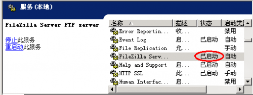3、回到系統服務列表,重新啟動服務,發現FileZilla Server FTP server服務可以正常啟動了;