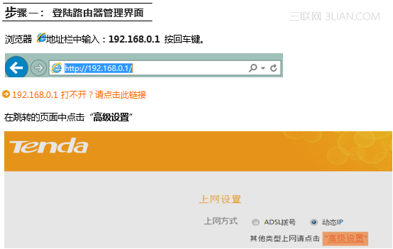 你需要登錄到路由器管理界面來進(jìn)行設(shè)置,此時,你需要有線(無線)連接到路由器,在瀏覽器中的地址欄中輸入192.168.0.1來打開管理界面。