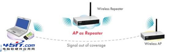 無線中繼器模式可以實現信號的中繼和放大, 從而延伸無線網絡的覆蓋范圍,各AP之間可以通過設定MAC地址來互相連接,當兩個局域網絡間的距離超過無線局域網產品所允許的最大傳輸距離,或者在兩個網絡之間有較高、較大干擾的障礙物存在時,便可以采用無線中繼方案來擴展無線網絡覆蓋。