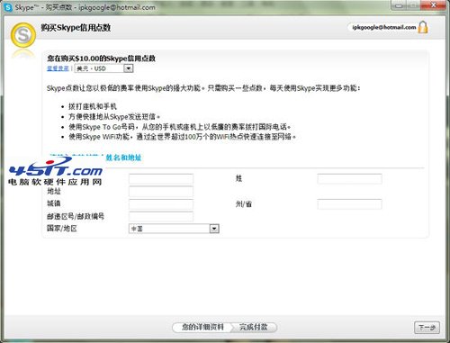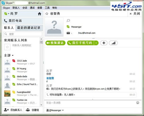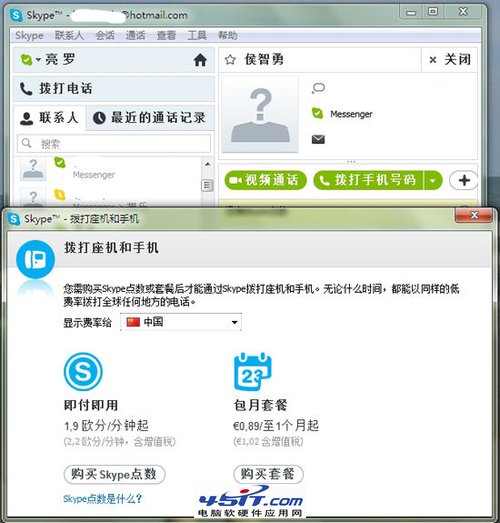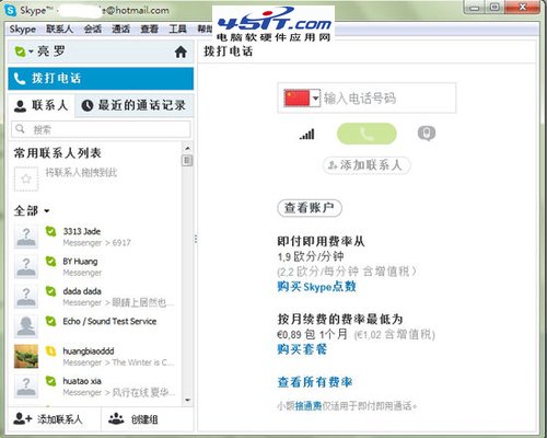 這個就是使用MSN登錄之后的情況,跟MSN大同小異。如果想給好友通話,Skype會出現充值界面。