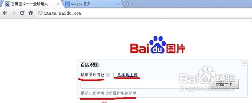 3.在彈出的以圖搜圖界面如下圖3所示,由于我們的圖片已經保存到電腦上了,因而用“從本地上傳”圖片,上傳完圖片后,搜索結果馬上就出來了