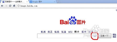 2.接著,我們找到百度圖片和谷歌圖片的以圖搜圖入口,檢驗這張圖片在百度圖片和谷歌圖片里的收錄結果。先來找百度的,如下圖2所示,我們百度圖片首頁的搜索框里找到一個山峰狀的小圖,如下圖紅框處所示,然后單擊該圖標