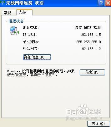 2.查看并記下自動獲取的IP地址,重點是“默認網(wǎng)關”是多少,一般是“192.168.1.1”: