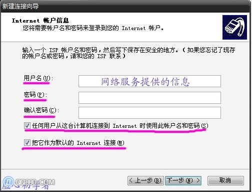 XP原版用戶新安裝的系統,需要上網,必須設置一下自己的寬帶連接,下面就這一操作步驟做一下簡單的介紹。