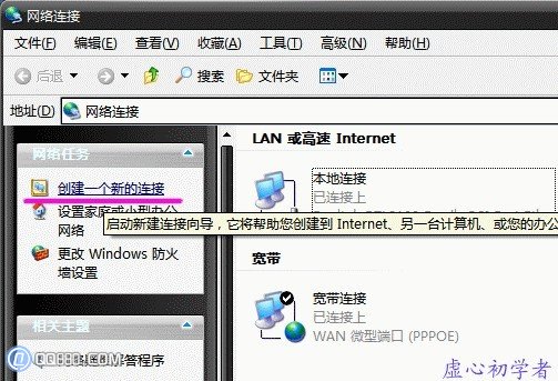 第二步:左側的“網絡任務”下面的“創建一個新的連接”。