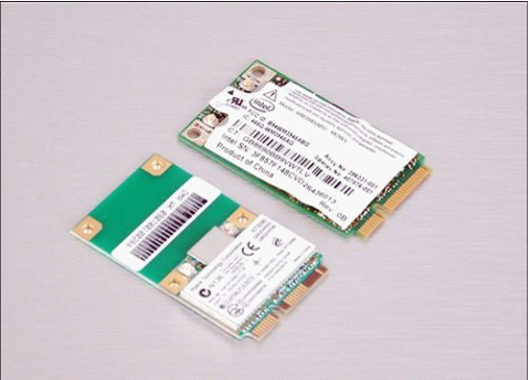內(nèi)置無(wú)線網(wǎng)卡分為兩種:一種是臺(tái)式機(jī)專用的PCI接口無(wú)線網(wǎng)卡。(圖一)一種是筆記本電腦內(nèi)置的MINI-PCI無(wú)線網(wǎng)卡。(圖二)