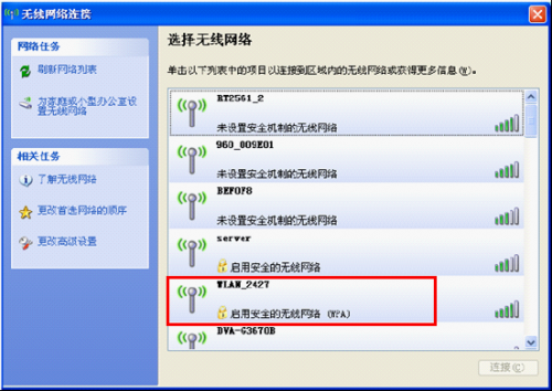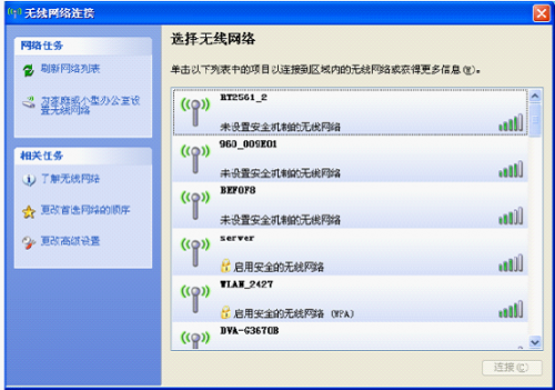 1、雙擊系統(tǒng)右下角的無(wú)線網(wǎng)絡(luò)圖標(biāo),系統(tǒng)將自動(dòng)搜索無(wú)線網(wǎng)絡(luò)并列表顯示,