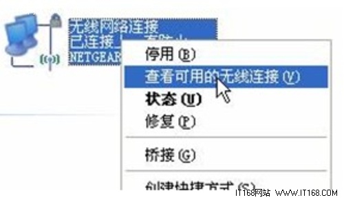 5.1. 完成基本配置后,若想通過無線方式上網(wǎng),須按照本文開頭的設(shè)置“本地連接”的方式設(shè)置電腦的“無線網(wǎng)絡(luò)連接”。然后右鍵單擊“無線網(wǎng)絡(luò)連接”選“查看可用的無線連接”: