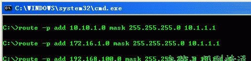 注意事項:僅配置外網網卡的網關和DNS;內網只配置IP地址和對應掩碼即可。接著,在CMD窗口下使用 route add 添加內部業務網網段到本機路由表中。