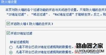 1.選擇缺省過濾規則為:凡是不符合已設IP地址過濾規則的數據包,禁止通過本路由器: