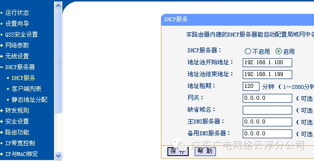 注意:在路由器每個對話框設(shè)置完成后都要保存一次才能生效。