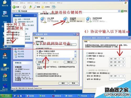 如果您的電腦無法連接光貓路由器的時候,請看下圖的電腦設置。修改Internet協議(TCP/IP)即可。路徑是 網上鄰居--屬性--本地連接--屬性--常規,下拉找到Internet協議(TCP/IP)。