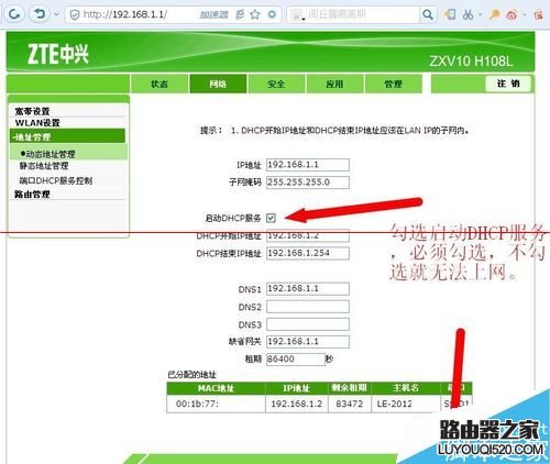 9、網絡--地址管理--動態地址管理,勾選 啟動DHCP服務,必須勾選哦!勾選后點確定。