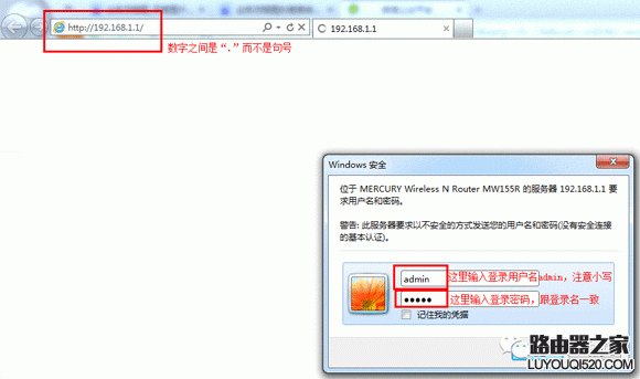 1、打開(kāi)電腦ie瀏覽器,輸入192.168.1.1然后打開(kāi)路由器的登錄界面,在彈出的對(duì)話框中輸入路由器的登錄賬號(hào)和密碼“admin/admin”這里的用戶名和密碼均為小寫。如下圖;