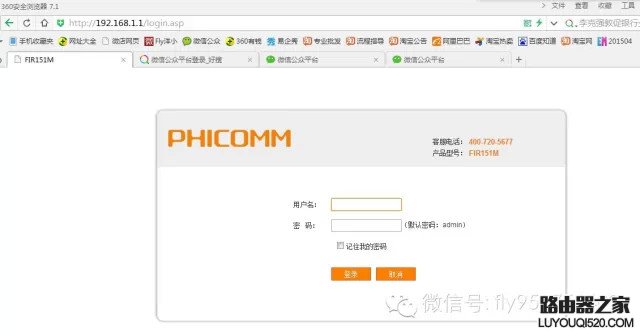 然后在瀏覽器的地址欄里輸入:192.168.1.1