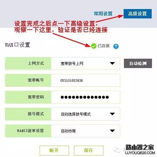 設(shè)置完成以后點(diǎn)一下高級(jí)設(shè)置,觀察一下這里,驗(yàn)證是否已經(jīng)連接