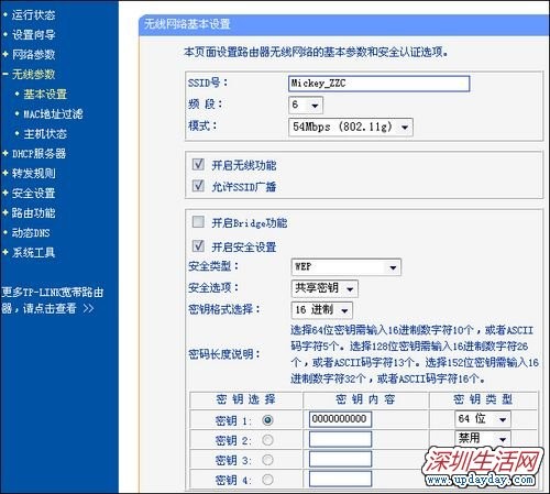 經過以上的設置之后,都會跳轉到如上圖的窗口。在這里我們可以選擇路由是否開啟無線狀態,默認是開啟的。SSID是無線局域網用于身份驗證的登錄名,只有通過身份驗證的用戶才可以訪問本無線網絡