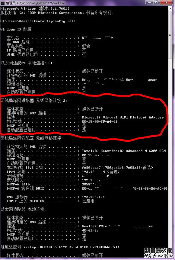 然后在里面找到你電腦的mac地址就在紅線框中的那個。