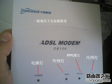 3、接完以后,看看燈是否亮,MODEM的燈正常使用的情況下全部會亮
