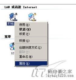 右鍵點擊“本地連接”-“屬性”,打開屬性頁