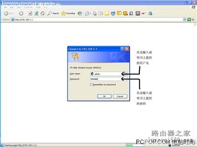接完線以后,就要開始設置工作了。首先選擇任意一臺連著路由器的電腦,在電腦中打開IE瀏覽器(也可以用其他瀏覽器,只要打得開網頁就行)。輸入192.168.1.1(個別路由器的地址是192.168.0.1,這個可以在產品說明書中查找。)打開路由器設置窗口: