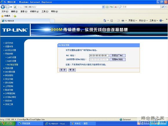 我使用的是 TP-LINK TL-WR841N 802.11N 300M 無線寬帶路由器,接入到二級或多級接口前對路由器做了以下設置;