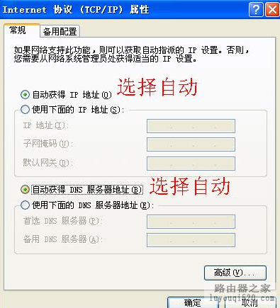 然后,選擇自動獲取IP地址,自動獲取DNS服務器地址