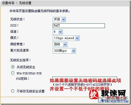 重點:如果你是無線路由的話,你一定對無線進行設置,不用的話就關掉,要是自己用的話就設置一個密碼,否則你鄰居也是很容易就蹭你的網。按圖就行設置。密碼建議選擇WPA-PSK/WPA2-PSK方式加密。
