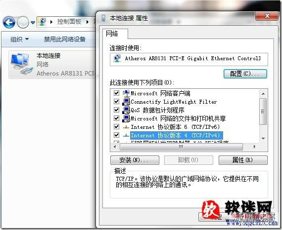 在出現的本地連接屬性窗口中雙擊internet 協議版本4 (XP直接就是TCP/IP)