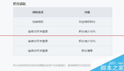 6、不過需要注意的是長時間不使用百度瀏覽器,積分會扣除的。連續30天未登錄積分減少50%;連續60天未登錄,積分減少50%;連續90天未登錄,積分清零。