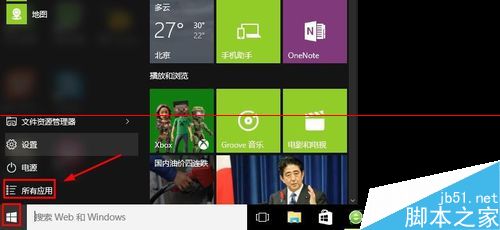 1、點擊Win10的開始菜單,然后點擊所有應用打開。