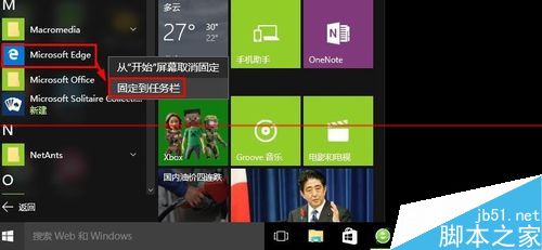 6、當然我們也可以將Microsoft Edge瀏覽器固定到任務欄。這也是另一種快捷方式。