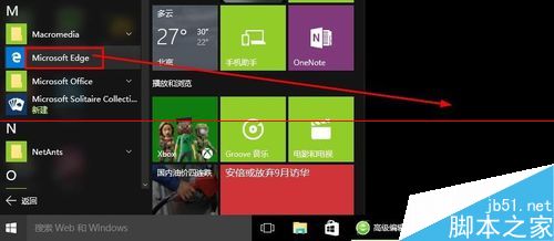 5、這樣以后我們在開始菜單中可以快速的打開Microsoft Edge瀏覽器。