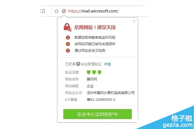 4、https危險鏈接認證:說明此網(wǎng)站的https認證錯誤,可能有安全隱患,建議不要訪問。如圖4所示