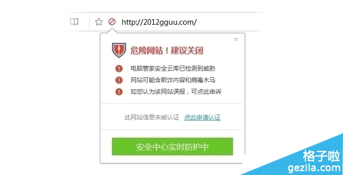 5、惡意高危網(wǎng)址認證:此網(wǎng)站存在病毒或木馬,或者是釣魚網(wǎng)站,不要訪問。如圖5所示