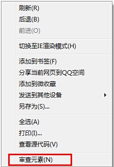 在使用審查元素功能之前我們首先要先開啟高速渲染組件即切換至高速渲染模式(切換方式請看:QQ瀏覽器的高速渲染組件在哪兒?),然后在網頁的空白處點擊鼠標的右鍵,這樣我們就可以在右鍵后的最后一個選項里看到審查元素了。