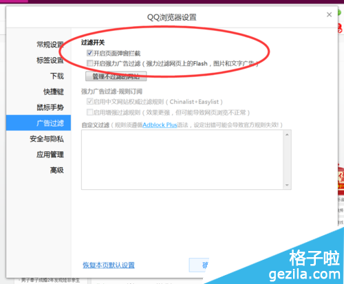 在廣告過(guò)濾里面大家根據(jù)自己的情況來(lái)選擇選項(xiàng)。
