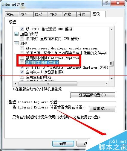 4、下拉高級頁面,找到禁用腳本功能選項,如下圖所示
