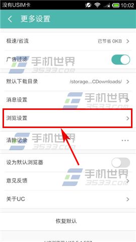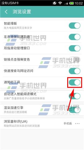 3)選擇【瀏覽設置】一項,把【通知欄工具】的開關關掉即可。(如下圖)