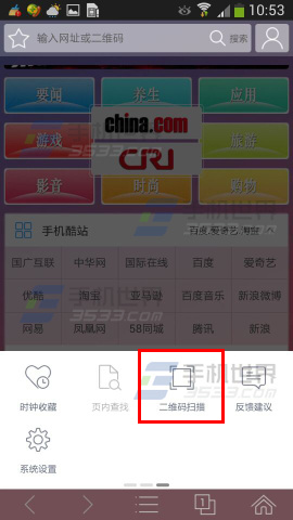 1)打開中華瀏覽器進(jìn)入,然后再點擊頁面下方【三】,按箭頭方向向左劃動兩次。
