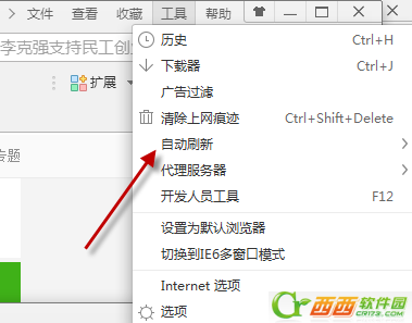 5、打開工具找到自動刷”,然后鼠標點擊自動刷新,此時網頁就會按照你設定的時間間隔自動刷新了!