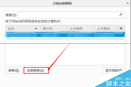 3、依然點(diǎn)擊“全部移除”即可(根據(jù)自己個(gè)人意愿),然后確定即可清除所有保存的賬號密碼