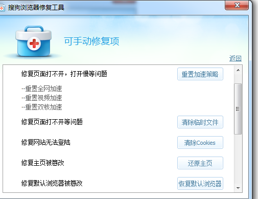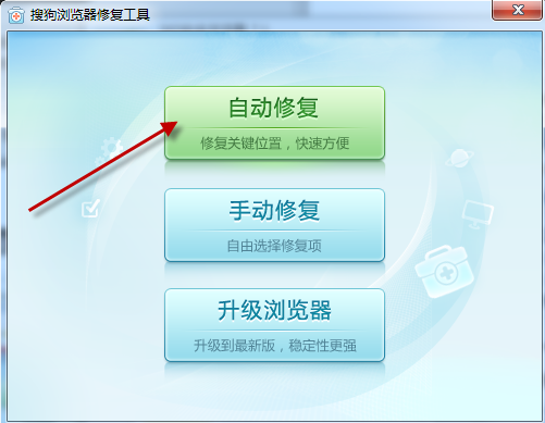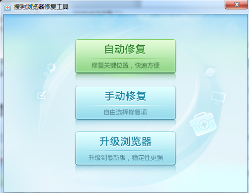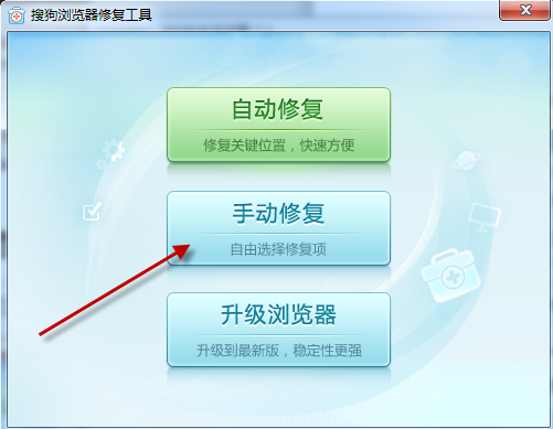 4、選擇瀏覽器修復工具后,后出現自動,手動和升級選擇按鈕