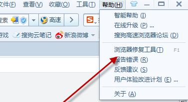 3、在幫助下拉菜單中選擇瀏覽器修復工具或者按快捷鍵F1